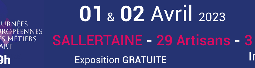 À l'occasion des Journées Européennes des Métiers d'Art 2023 (JEMA), les 1er et 2 avril 2023, huit professionnels de l’association Mingaco – Collectif Métiers d’Art, exposeront dans l’église romane de Sallertaine. Maroquinière, ébéniste, calligraphe-enlumineur, céramiste, sculptrice sur pierre, artiste soudeuse, relieuse d’art et feutrière accueilleront le public dans cette église du XIème siècle, dédiée aujourd’hui… Lire la suite JEMA 2023 — Avril 2023 —