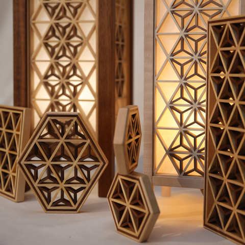 - Fabrication d’objets en bois selon la technique du kumiko : art de la table, luminaires